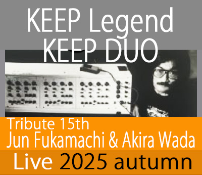 | 伝説の超絶技巧バンド「KEEP」、 深町純 氏と 和田アキラ 氏による「The DUO」、 現在進行形の「KEEP Legend」 について詳しい専用ページが「FUKAMACHI ism」サイト内に新設されました。 (2022/10/30・外部リンク) |